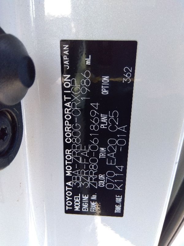 | Chassis No | ZRR80-0618694 | Chassis Code | 3BA-ZRR80G |