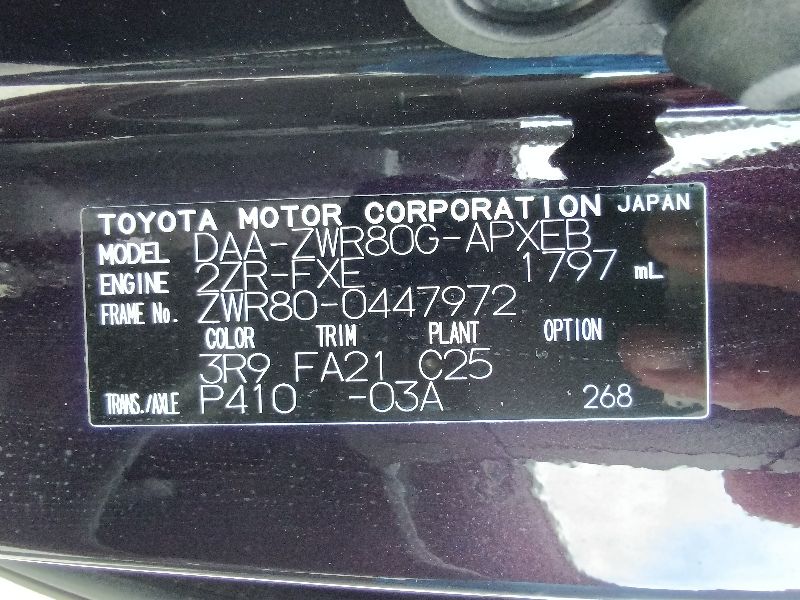 | Chassis No | ZWR80-0447972 | Chassis Code | DAA-ZWR80G |