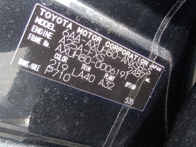 | Chassis No | AXUH80-0006191 | Chassis Code | 6AA-AXUH80 |
