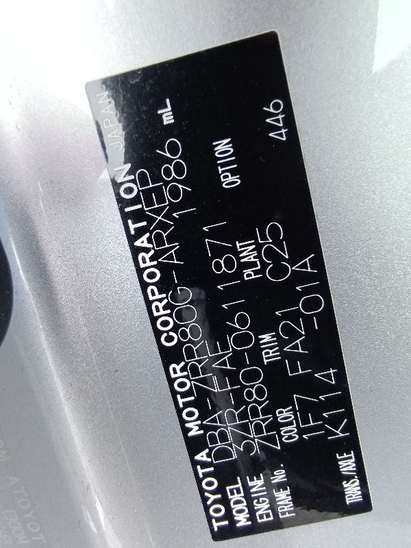 | Chassis No | ZRR80-0611871 | Chassis Code | DBA-ZRR80G |