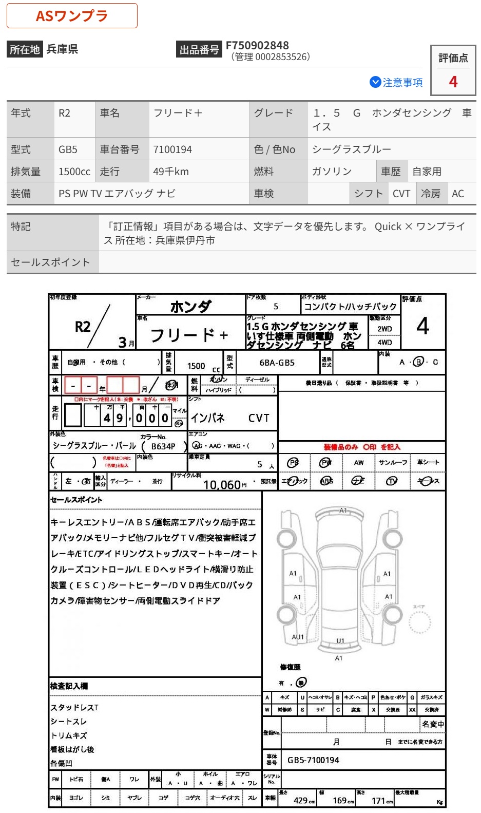 Vehicle Name | FREED | Auction Points | 4/B |