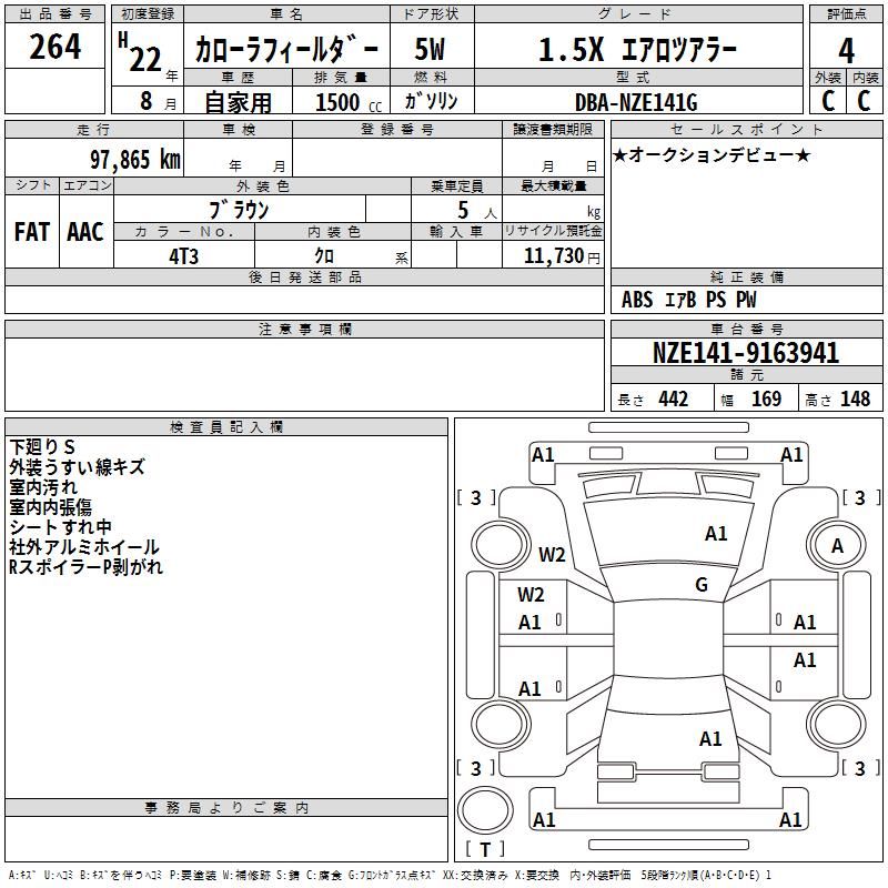 Vehicle Name | COROLLA FIELDER | Auction Points | 4/C |