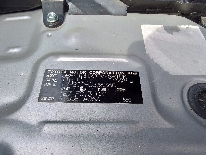 | Chassis No | TRH200-0336360 | Chassis Code | 3BF-TRH200V |