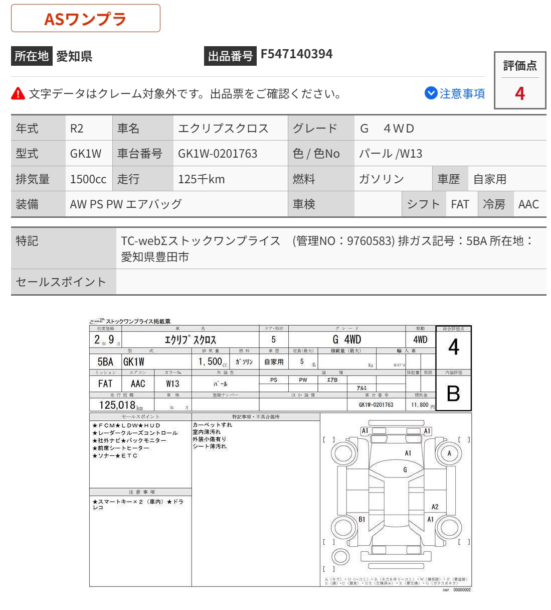 Vehicle Name | ECLIPSECROSS | Auction Points | 4/B |