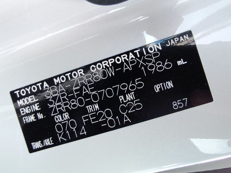| Chassis No | ZRR80-0707965 | Chassis Code | 3BA-ZRR80W |