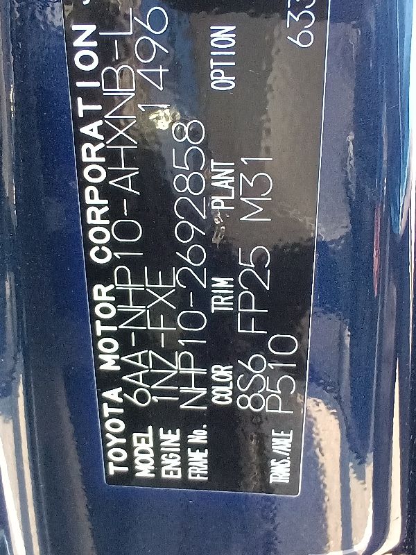 | Chassis No | NHP10-2692858 | Chassis Code | 6AA-NHP10 |