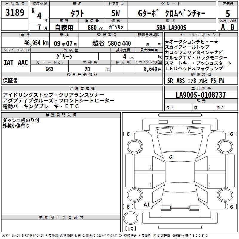 | Chassis No | LA900S-0108737 | Chassis Code | 5BA-LA900S |