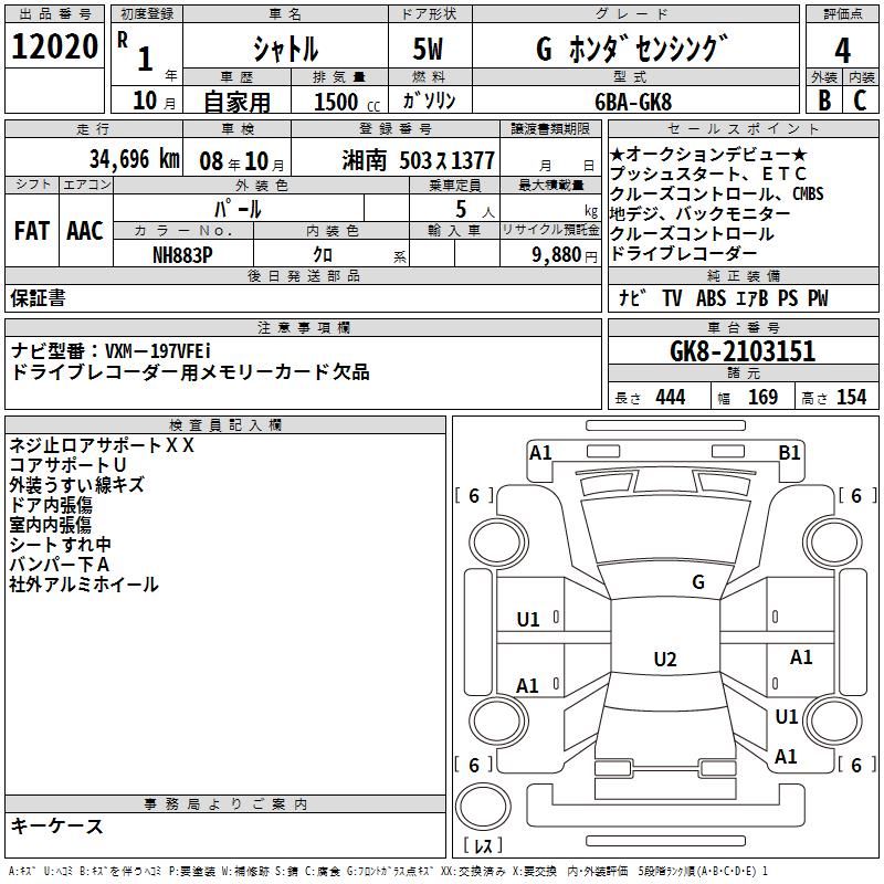 | Maker | HONDA | Grade | G Honda SENSING/SHUTTLE |