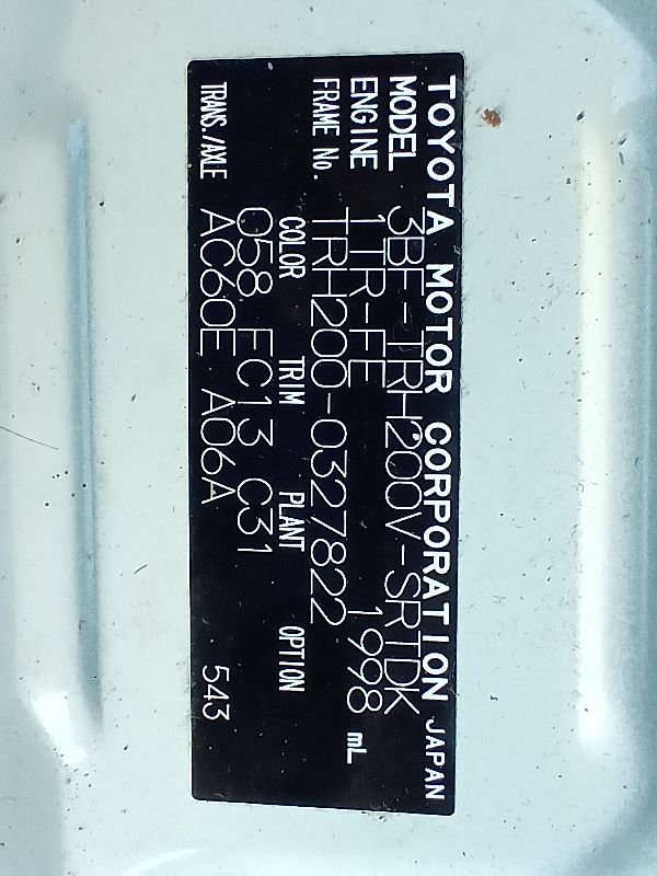 | Chassis No | TRH200-0327822 | Chassis Code | 3BF-TRH200V |