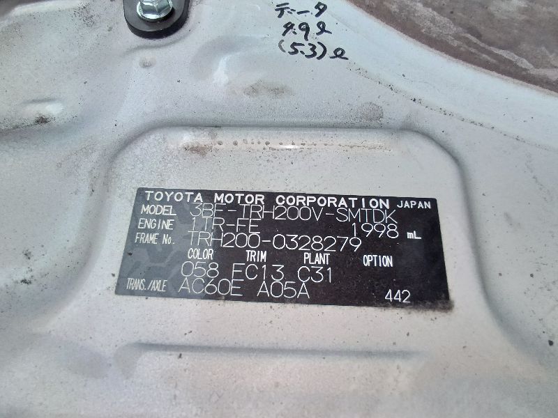 | Chassis No | TRH200-0328279 | Chassis Code | 3BF-TRH200V |