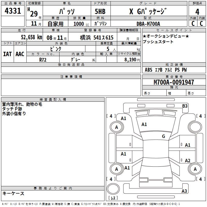 | Vehicle Name | PASSO | Auction Points | 4/C |