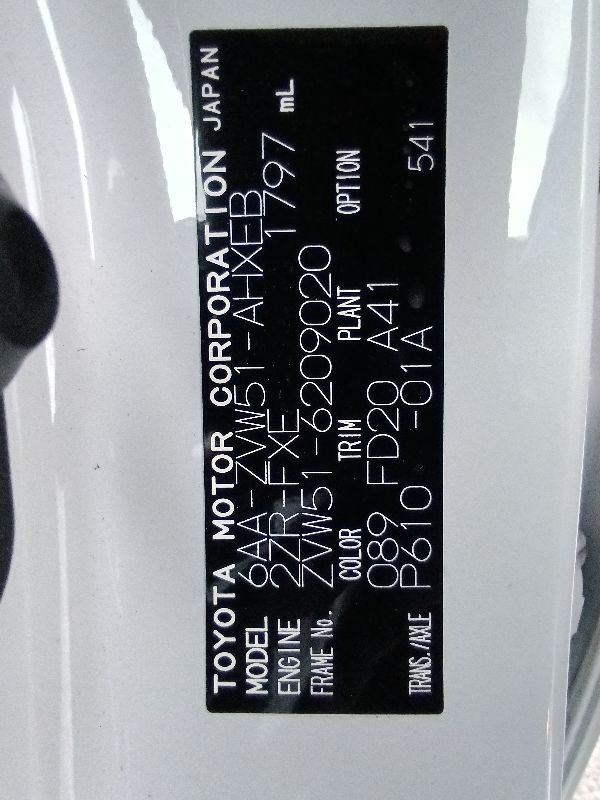 | Chassis No | ZVW51-6209020 | Chassis Code | GAA-ZVW51 |