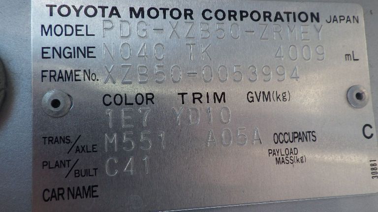 | Chassis No | XZB50-0053994 | Chassis Code | PDG-XZB50 |