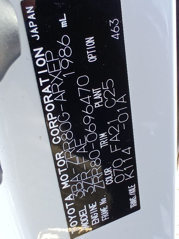 | Chassis No | ZRR80-0696470 | Chassis Code | 3BA-ZRR80G |