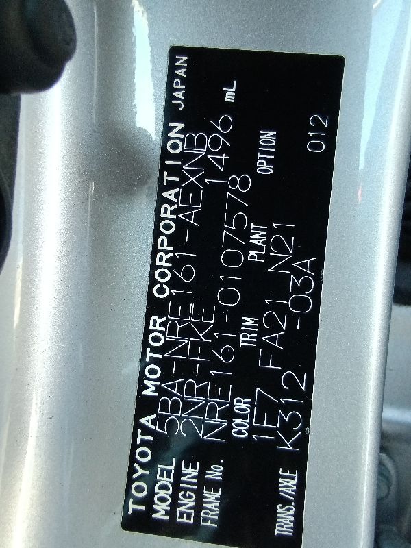 | Chassis No | NRE161-0107578 | Chassis Code | 5BA-NRE161 |