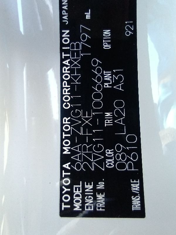 | Chassis No | ZVG11-1006669 | Chassis Code | 6AA-ZVG11 |