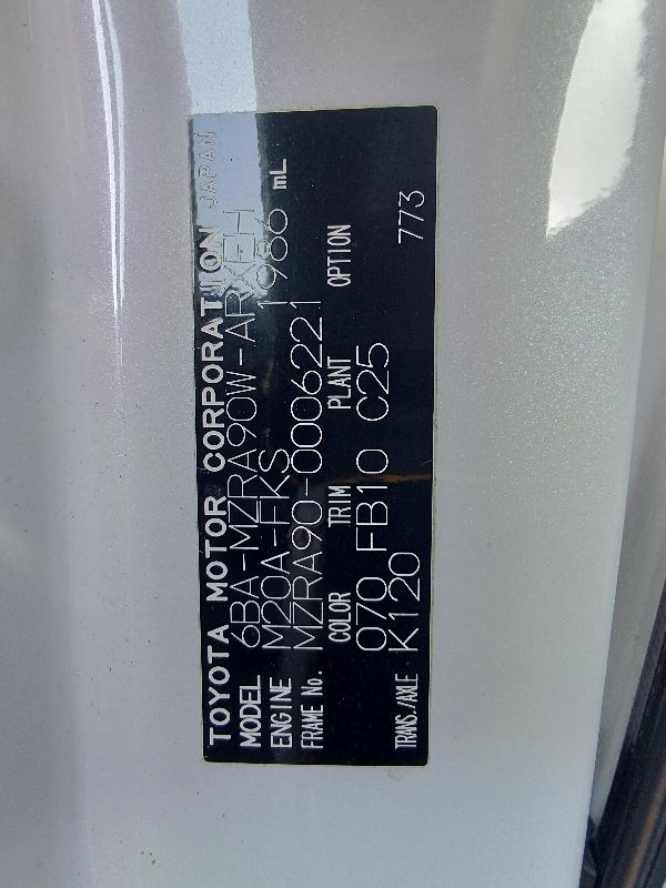 | Chassis No | MZRA90-0006221 | Chassis Code | 6BA-MZRA90W |