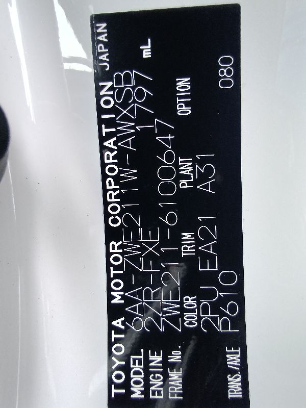 | Chassis No | ZWE211-6100647 | Chassis Code | 6AA-ZWE211W |