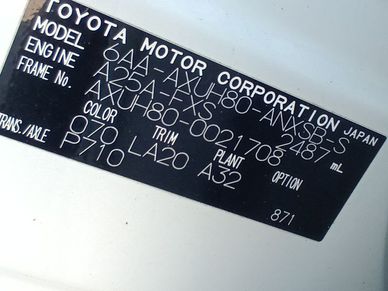 | Chassis No | AXUH80-0021708 | Chassis Code | 6AA-AXUH80 |