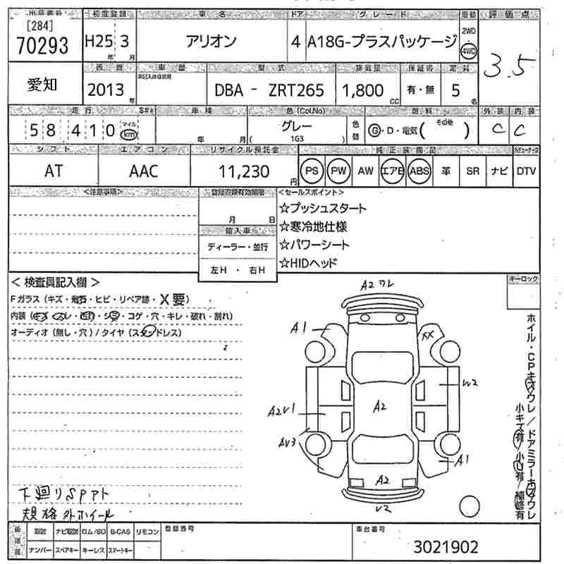 | Vehicle Name | ALLION | Auction Points | 3.5/C |