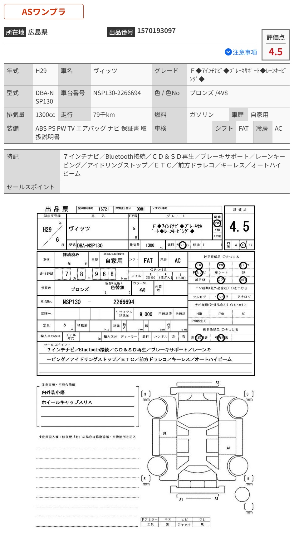 | Vehicle Name | VITZ | Auction Points | 4.5/B |