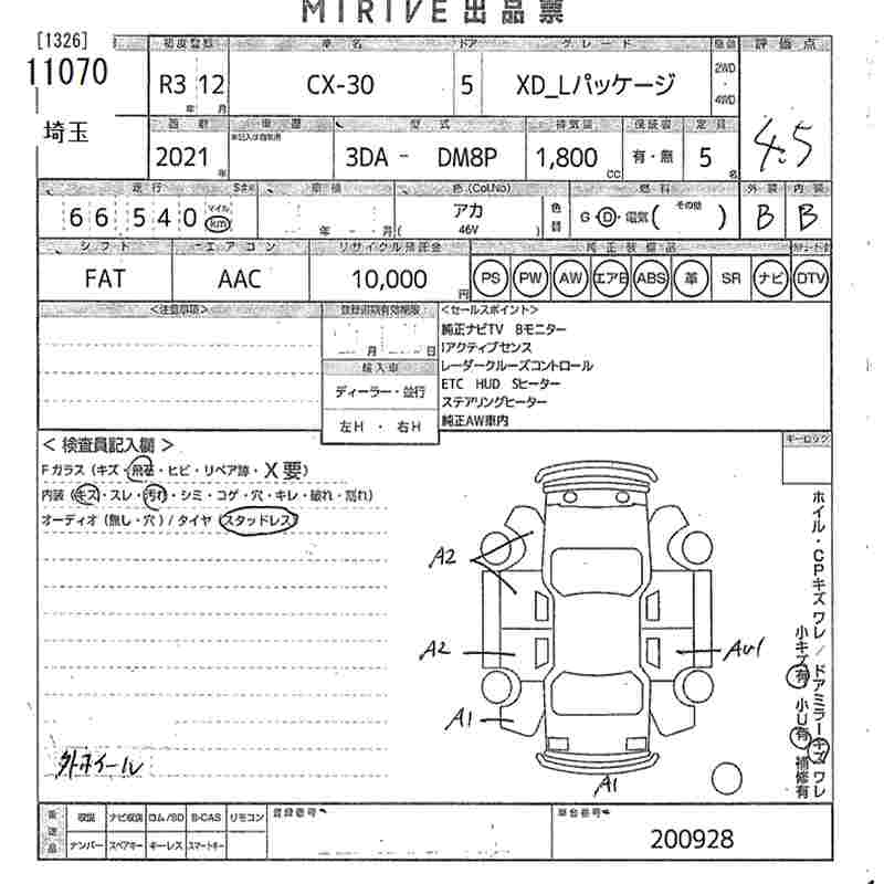 | Vehicle Name | CX-30 | Auction Points | 4.5/B |