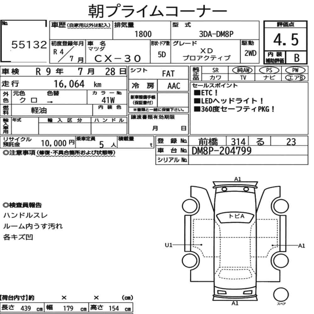 | Vehicle Name | CX-30 | Auction Points | 4.5/B |