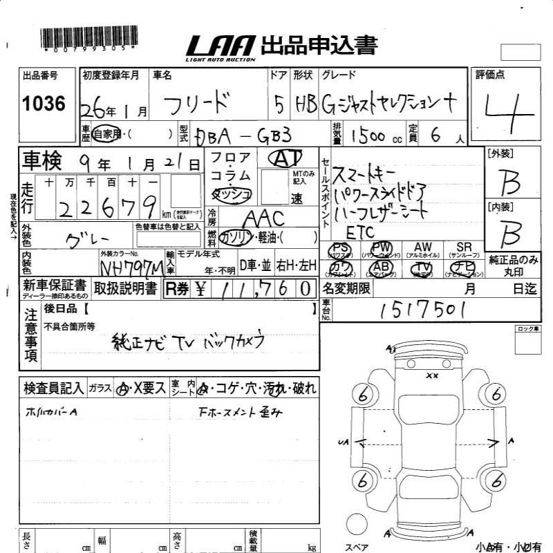 | Vehicle Name | FREED | Auction Points | 4/B |