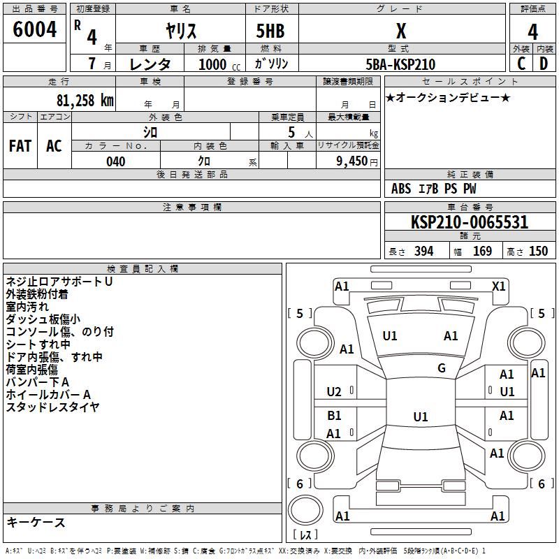 | Vehicle Name | YARIS | Auction Points | 4/D |