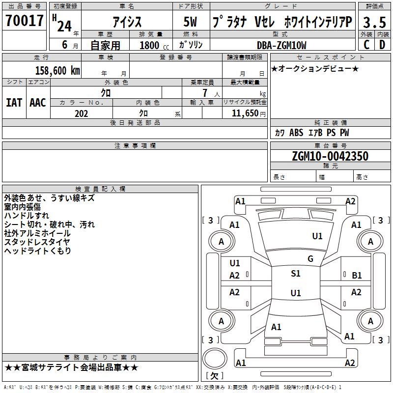 | Chassis No | ZGM10-0042350 | Chassis Code | DBA-ZGM10W |
