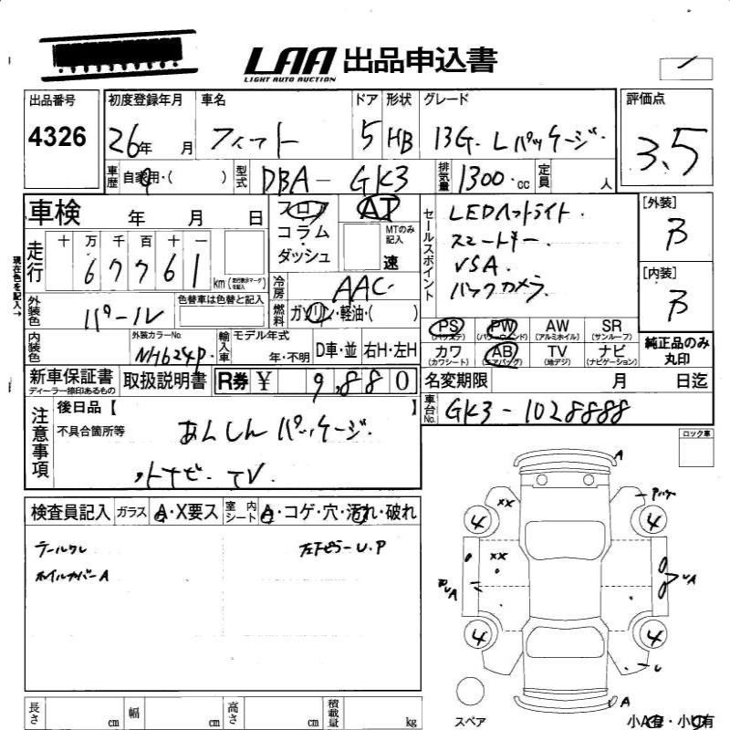 | Chassis No | GK3-1028888 | Chassis Code | DBA-GK3 |