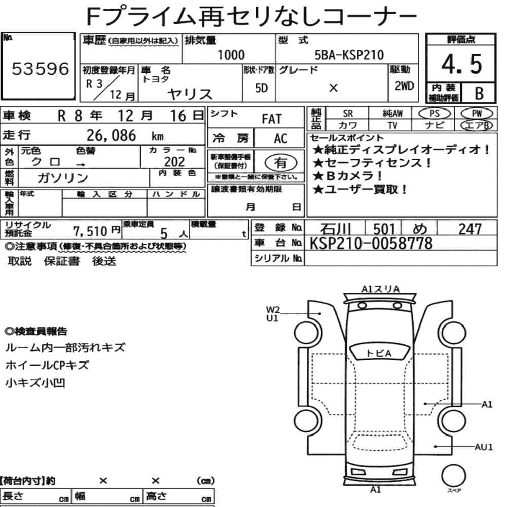 | Vehicle Name | YARIS | Auction Points | 4.5/B |