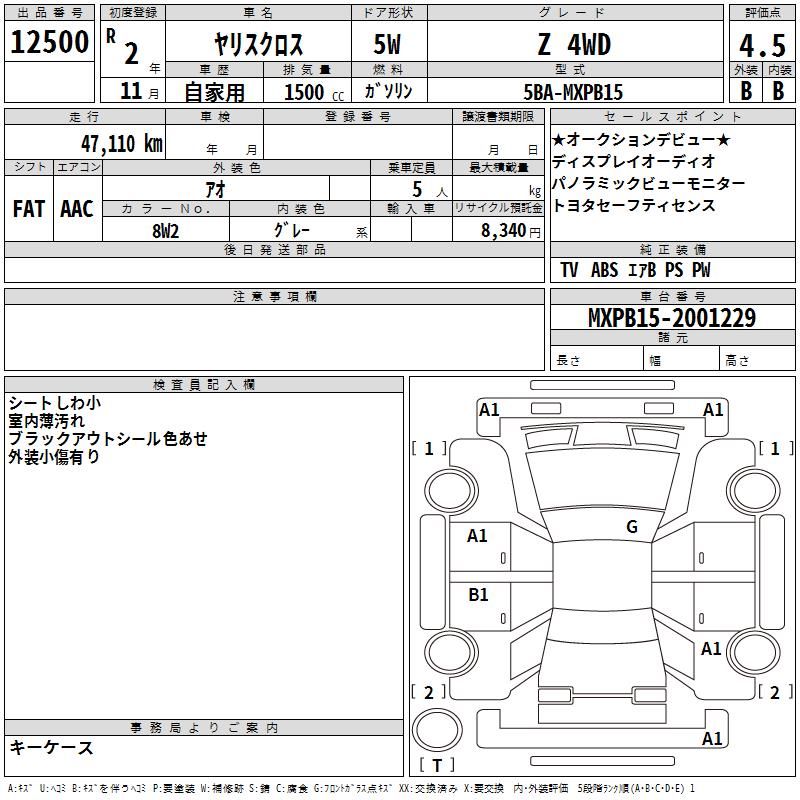 | Vehicle Name | YARIS CROSS | Auction Points | 4.5/B |