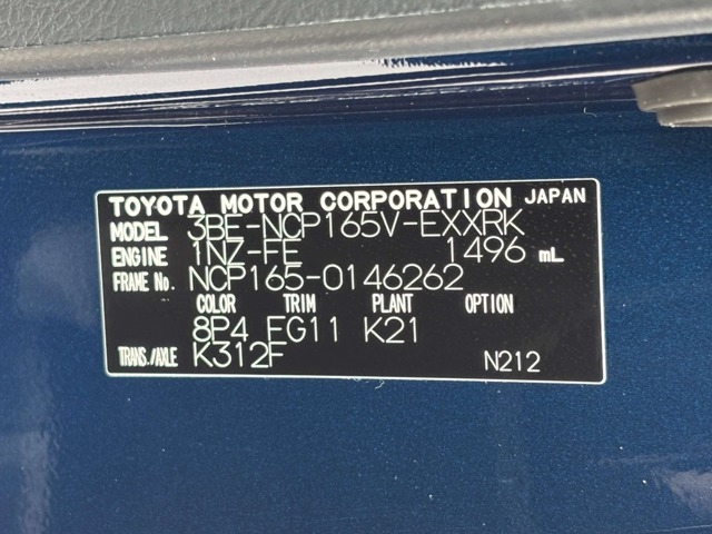 | Chassis No | NCP165-0146262 | Chassis Code | 3BE-NCP165V |