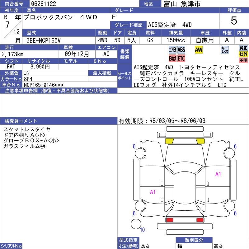 | Vehicle Name | PROBOX | Auction Points | 5/A |